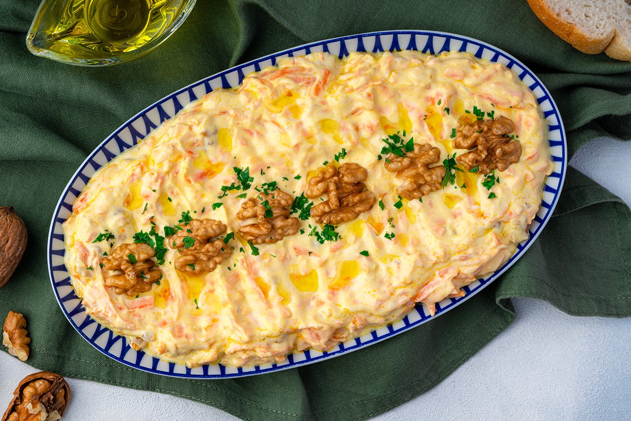 Soğuduktan sonra havuçları derin bir kaseye alın ve sarımsağı ekleyin.